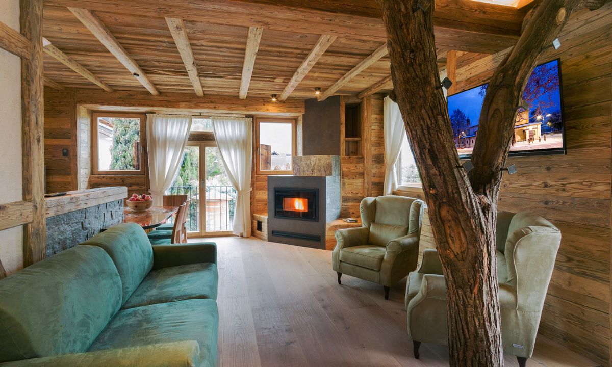 Soggiorno, cucina, bagno, camera da letto