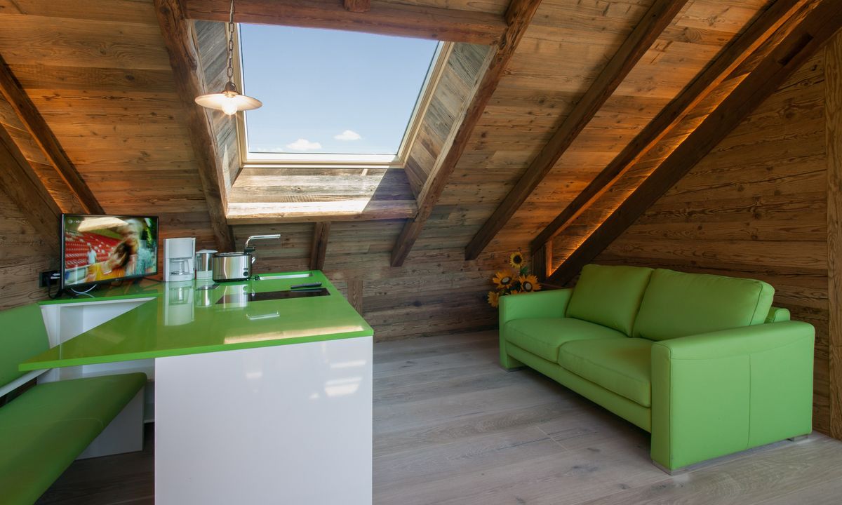 Gli appartamenti per 2 - 3 persone sono confortevoli e arredati con cura. Sono tutti esposti a sud e dotati di TV, SAT e di un balcone o terrazza. Dispongono di un soggiorno con angolo di cucina, di una camera da letto e di un bagno.